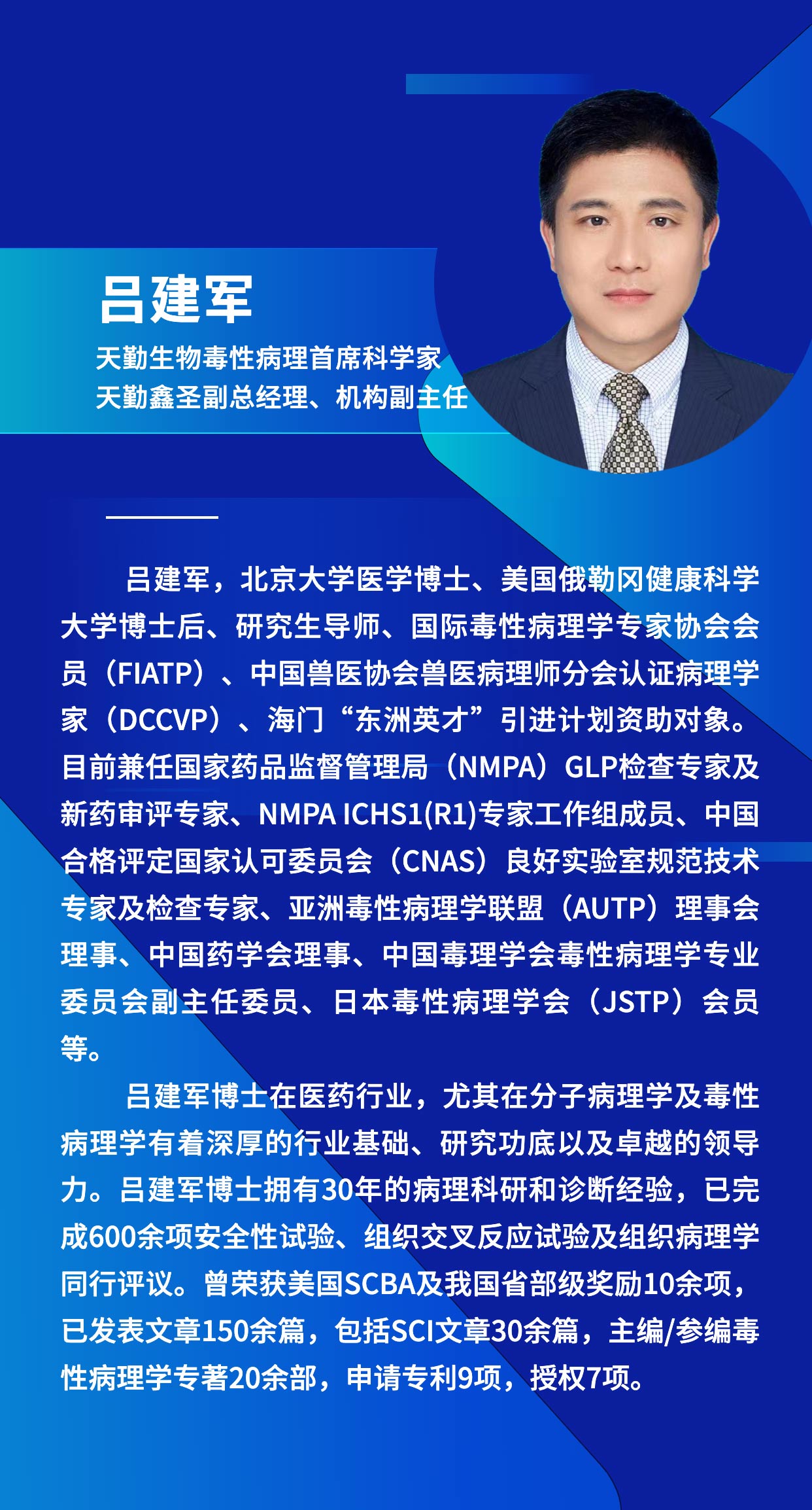 天勤生物任命呂建軍博士為公司毒性病理首席科學家,天勤鑫圣副總經理、機構副主任
