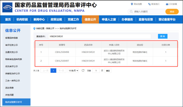 近日,國家藥品監督管理局藥品審評中心(CDE)官網公示,人福醫藥集團申報的1類創新藥HW241045片正式獲得國家藥品監督管理局頒發的《藥物臨床試驗批準通知書》,擬用于治療特發性肺纖維化(IPF)。在這一重大進展背后,天勤生物提供的全方位毒理學研究支持,為該項目獲批按下"加速鍵"。